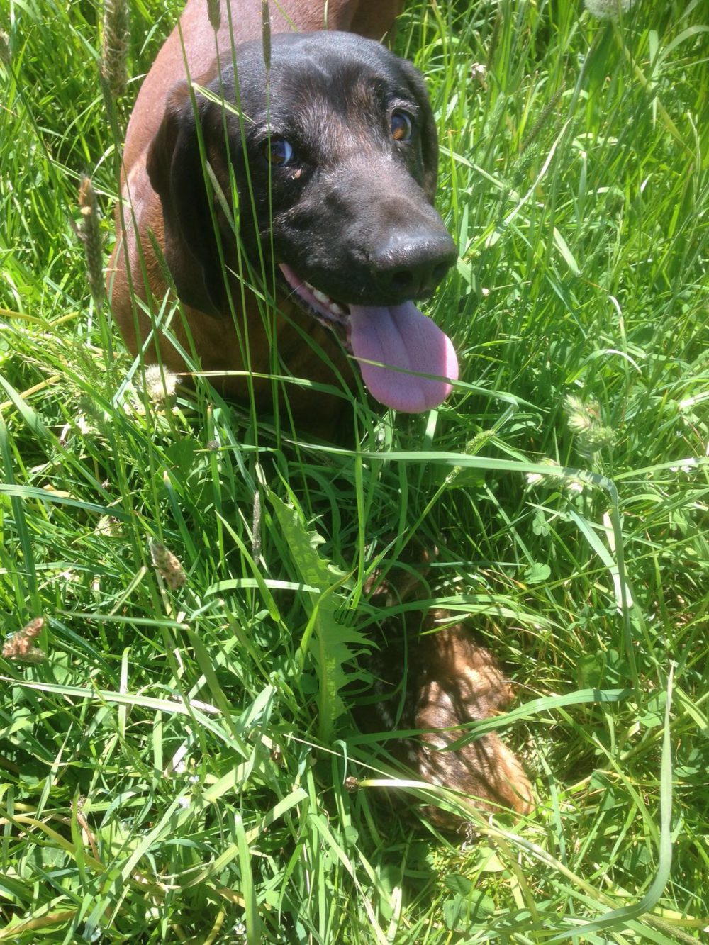 Ein zur Kitzsuche geeigneter Hund hat ein Rehkitz gefunden