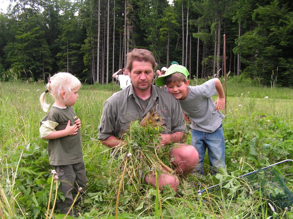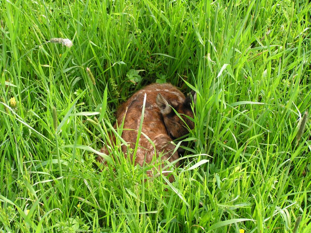 Wiesen dienen vielen Wildarten als Kinderstube. Rehe, Hasen und in der Wiese brütende Vögel nutzen das Gras als Schutz und Deckung für ihre Jungtiere. Dies macht sie natürlich auch für die Landwirte nahezu unsichtbar.