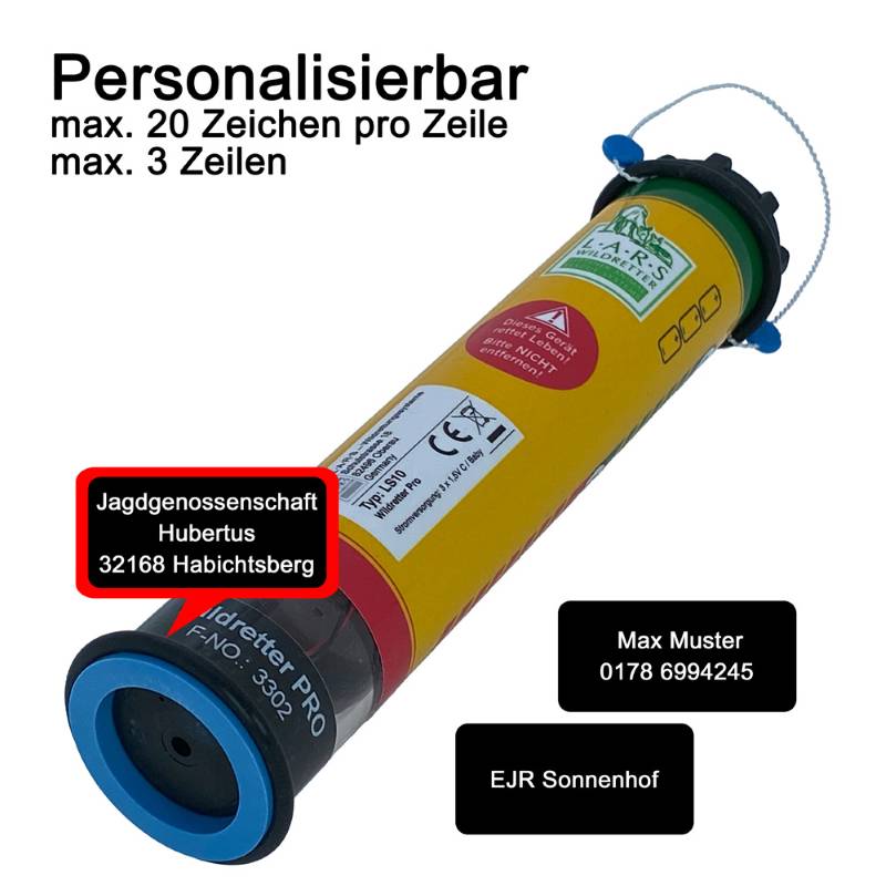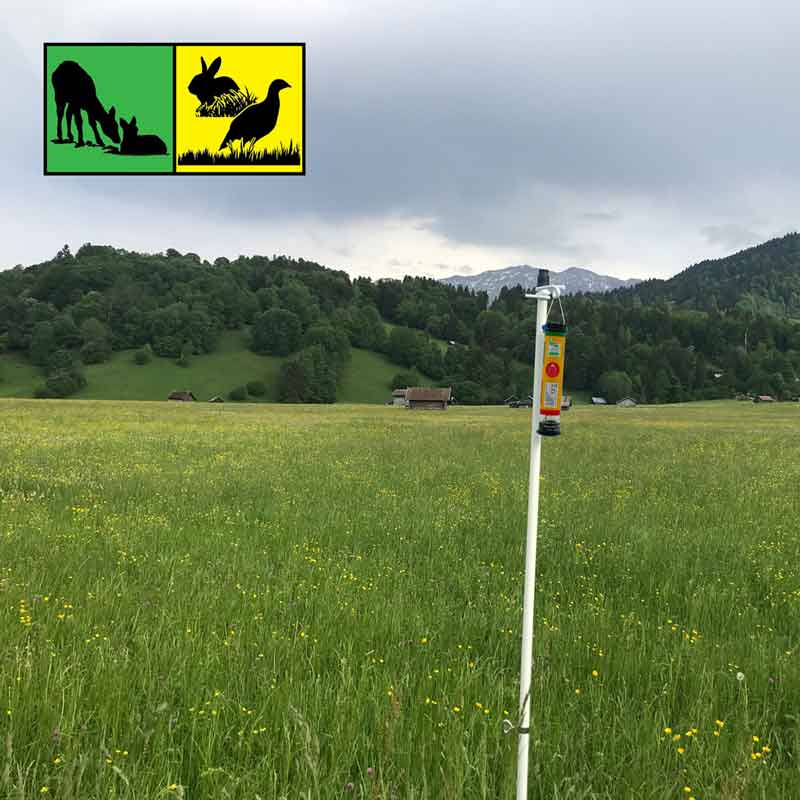 Der Wildretter-Wildvergrämer PRO LS10 eignet sich besonders zur Rehkitzrettung / Jungwildrettung sowie zur Vergrämung von Schwarzwild im Grünland. Durch die integrierte Halteschlaufe und das geringe Gewicht kann der Wildretter-Wildvergrämer PRO LS10 leicht an handelsüblichen Holz- oder Kunststoffpfählen aufgehängt werden. Auch ein Aufhängen am natürlichen Bewuchs (z.B. Äste bis zu 40 mm Ø) ist damit ohne weiteres möglich.